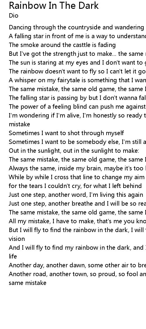 But I will fly to find the rainbow in the dark, I will fly so high, my vision |