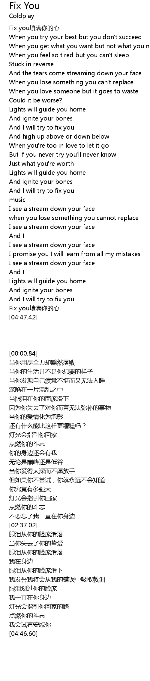 | [00:00.84] | Fix you tián mǎn nǐ de xīn |