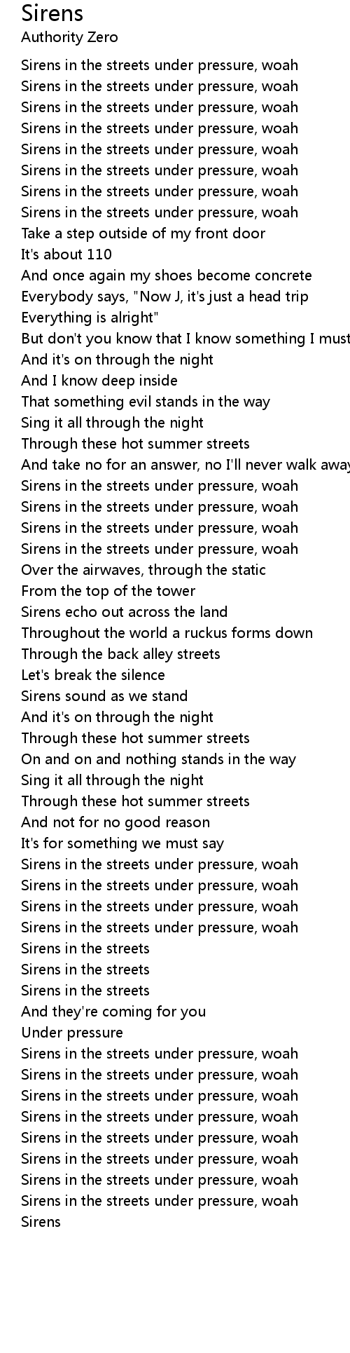 Sirens in the streets under pressure, woah |
