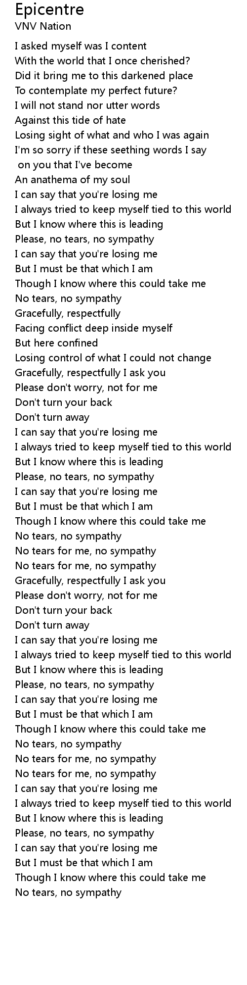 No tears for me, no sympathy |