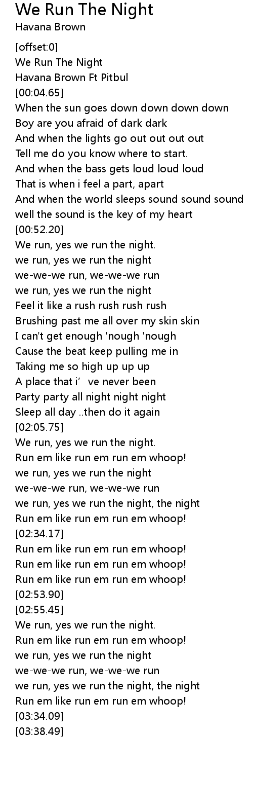 | [00:00.00] | We Run The Night |