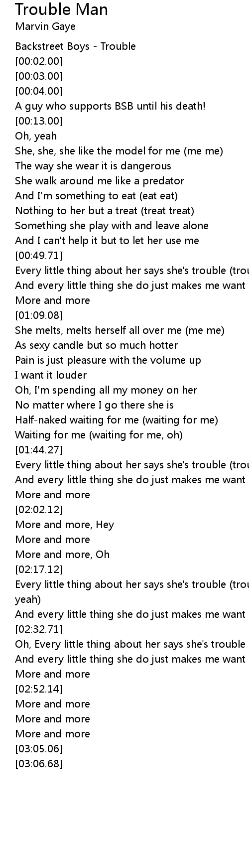 Every little thing about her says she's trouble (trouble, trouble yeah) |