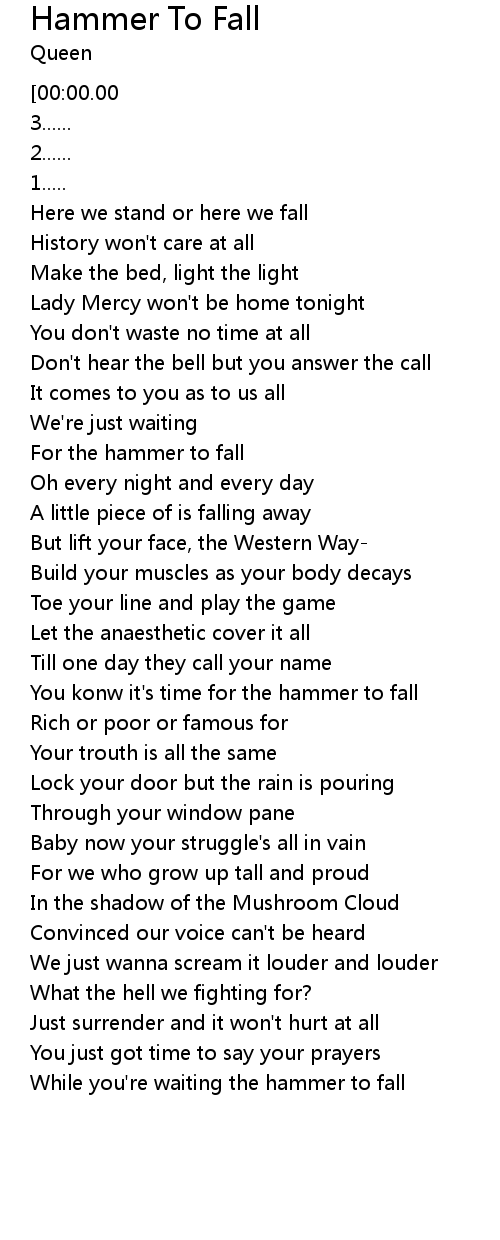 | [04:05.00][00:00.00] | Hammer to fall___Queen |