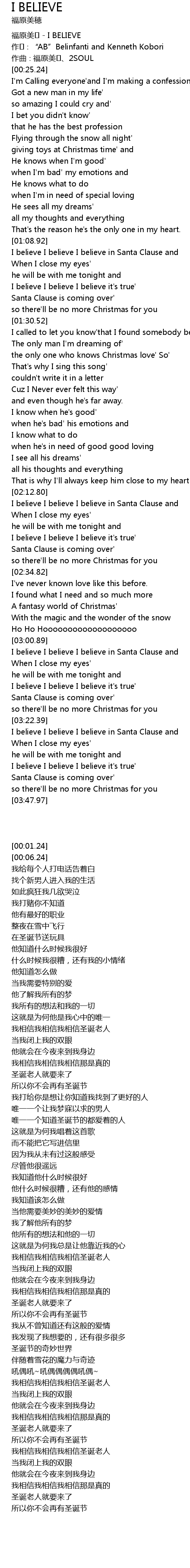 | [03:22.98] | 我相信我相信我相信圣诞老人 |