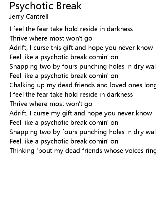 Feel like a psychotic break comin' on |