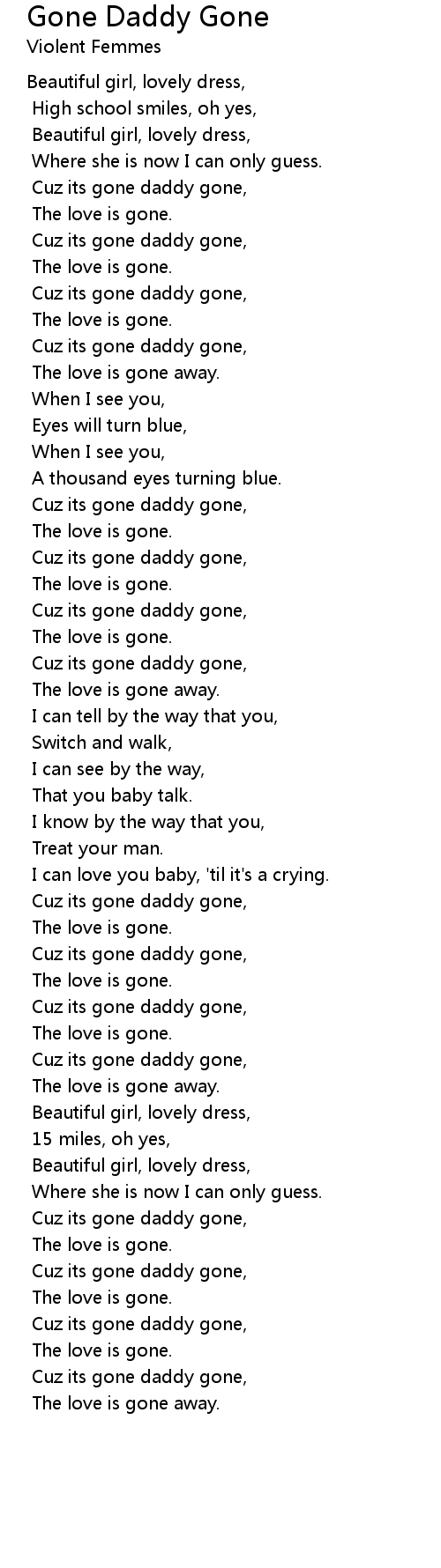 Cuz its gone daddy gone, |