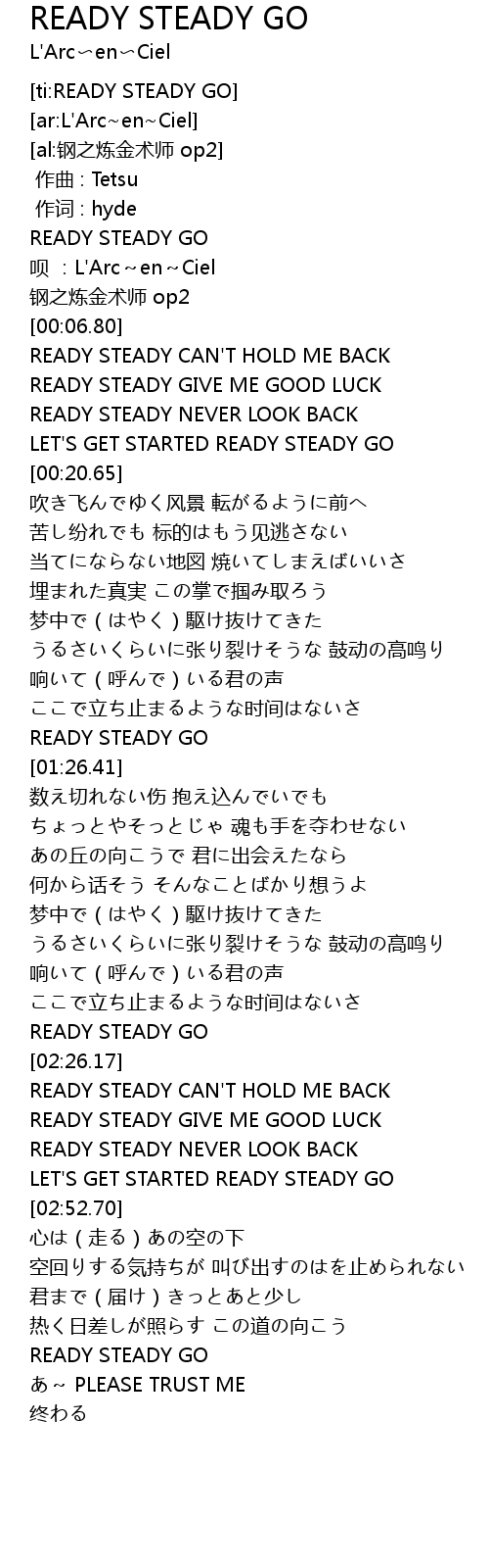 | [02:46.04] | READY STEADY NEVER LOOK BACK |