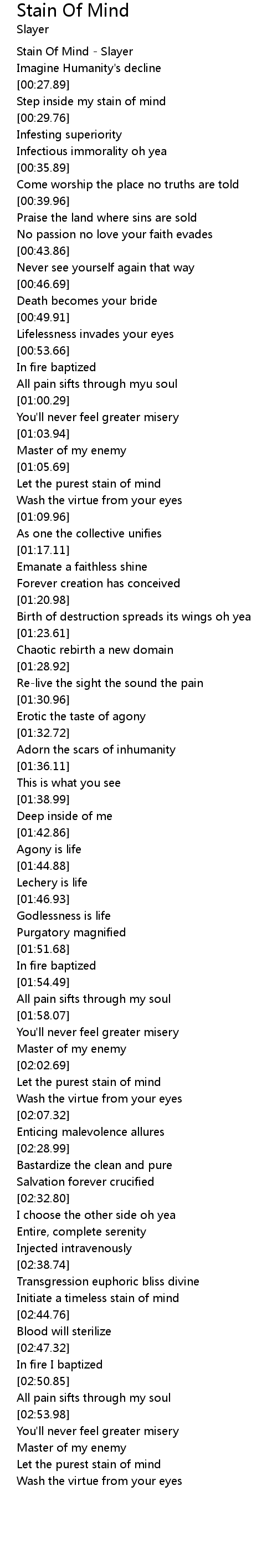 Stain Of Mind - Slayer |