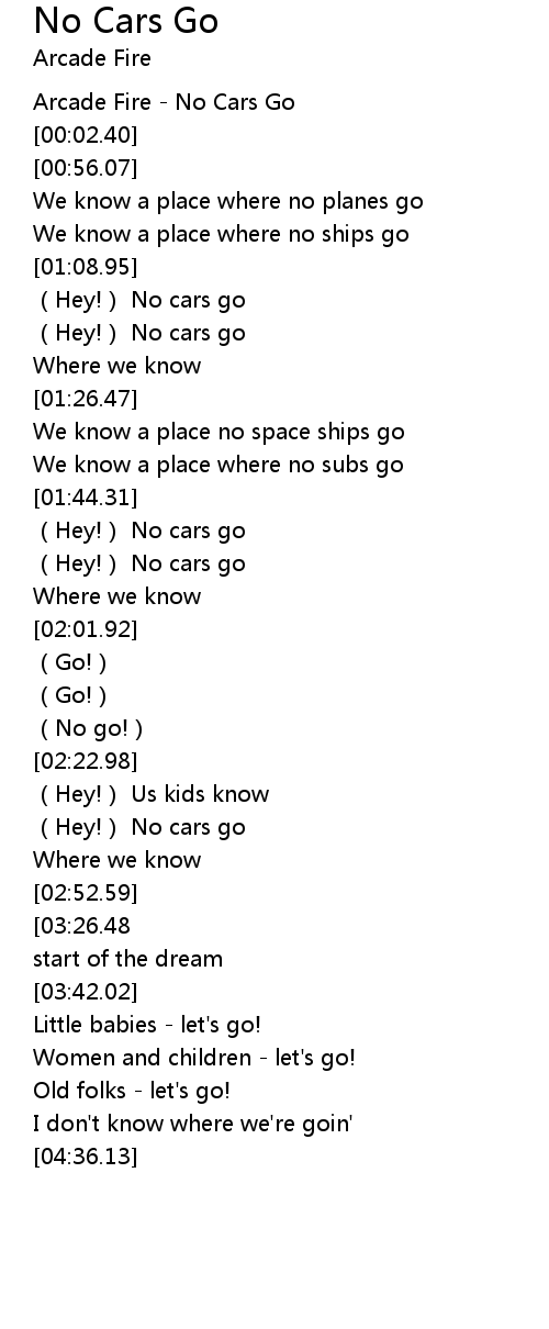 | [00:00.08] | Arcade Fire - No Cars Go |