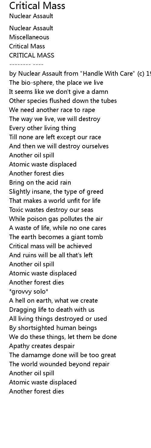 by Nuclear Assault from "Handle With Care" (c) 1989 |