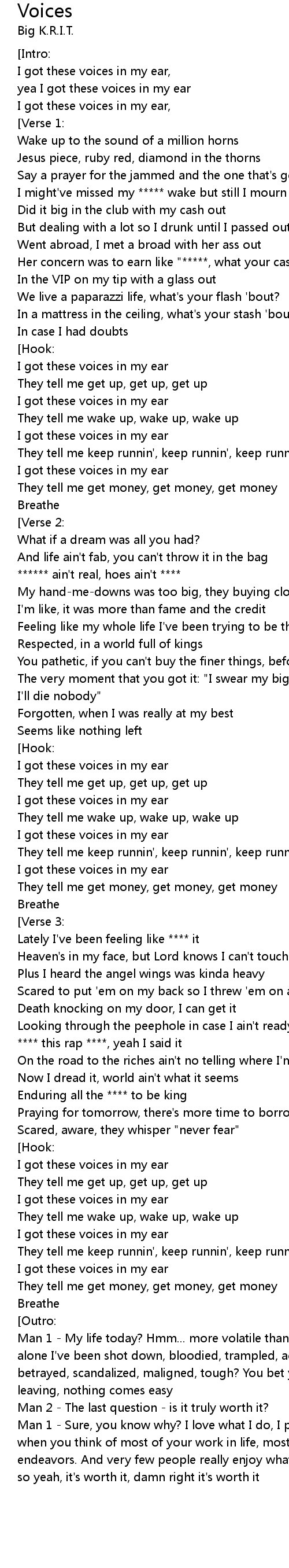 I got these voices in my ear, |