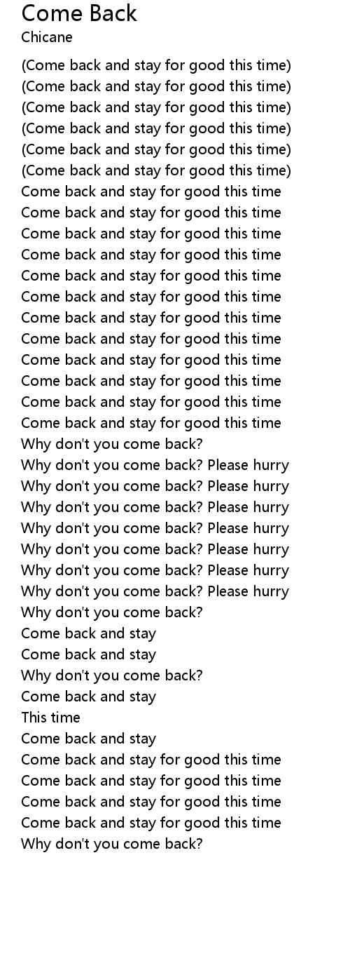 (Come back and stay for good this time)