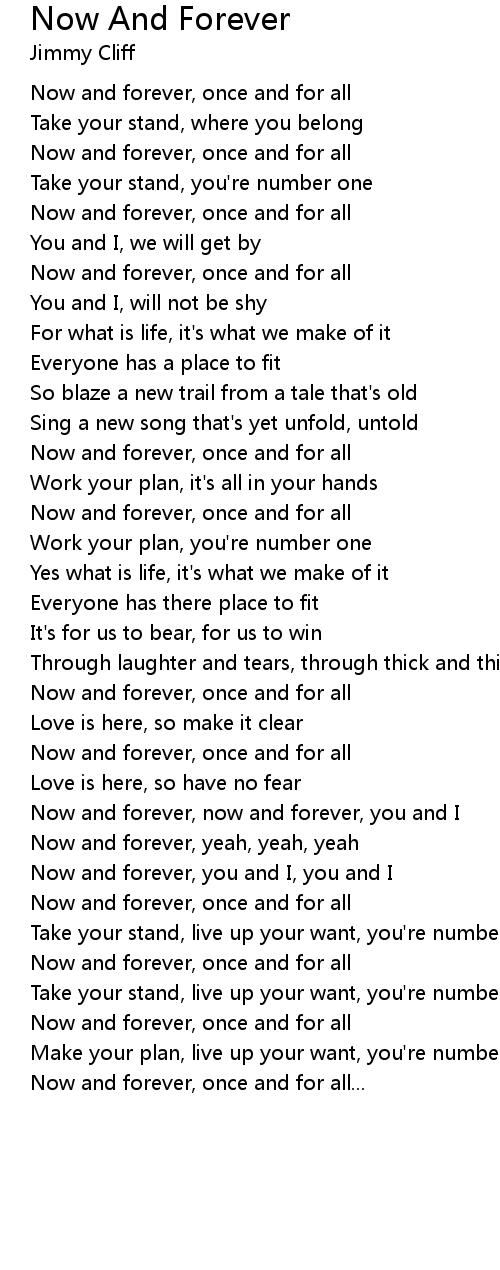 Now and forever, now and forever, you and I |