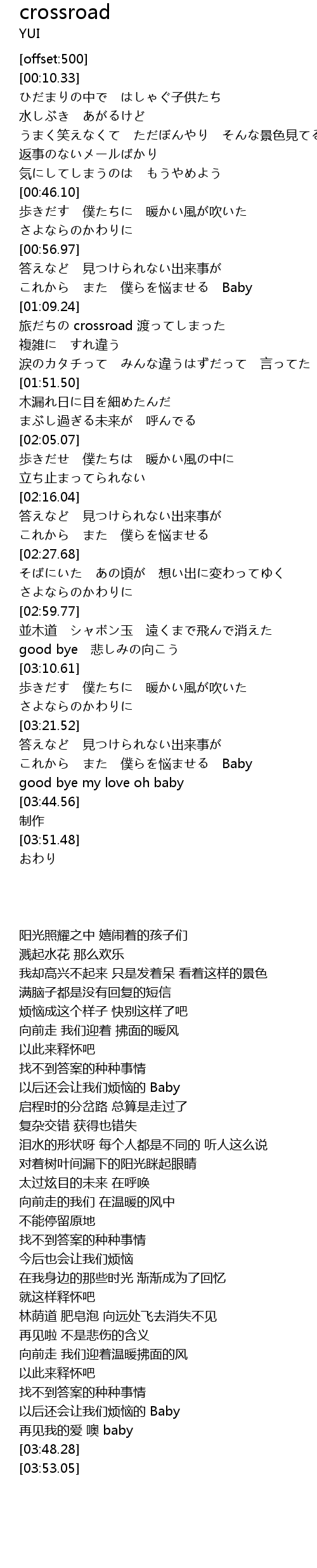 | [01:31.42] | 旅だちの crossroad 渡ってしまった |