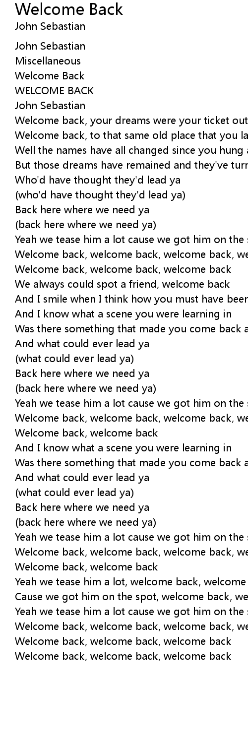 Welcome back, welcome back, welcome back, welcome back |