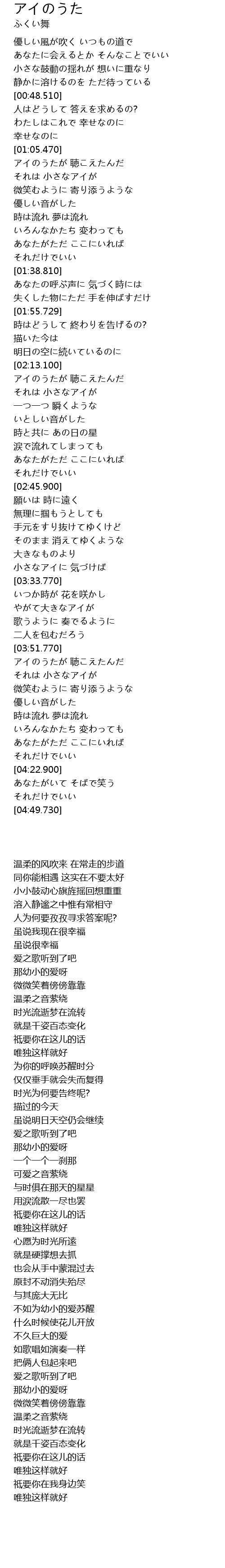 | [01:05.730] | アイのうたが 聴こえたんだ |