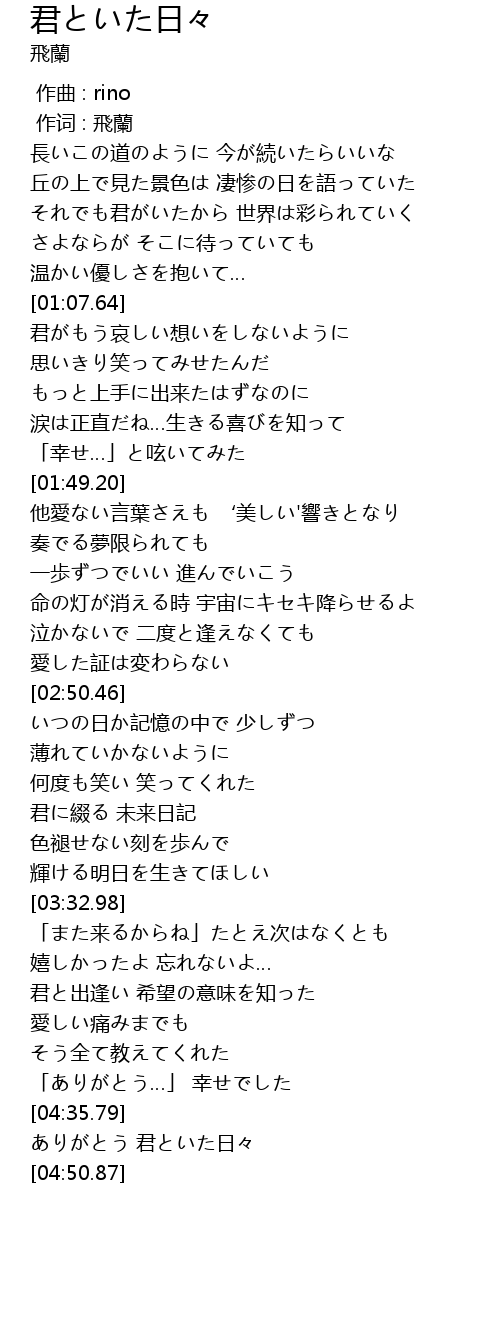 | [04:07.62] | 君と出逢い 希望の意味を知った |