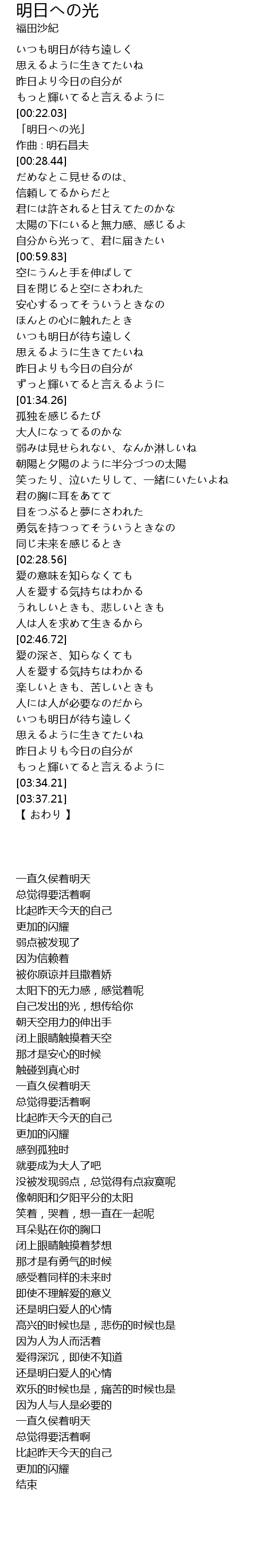 | [00:24.44] | 「明日への光」 |