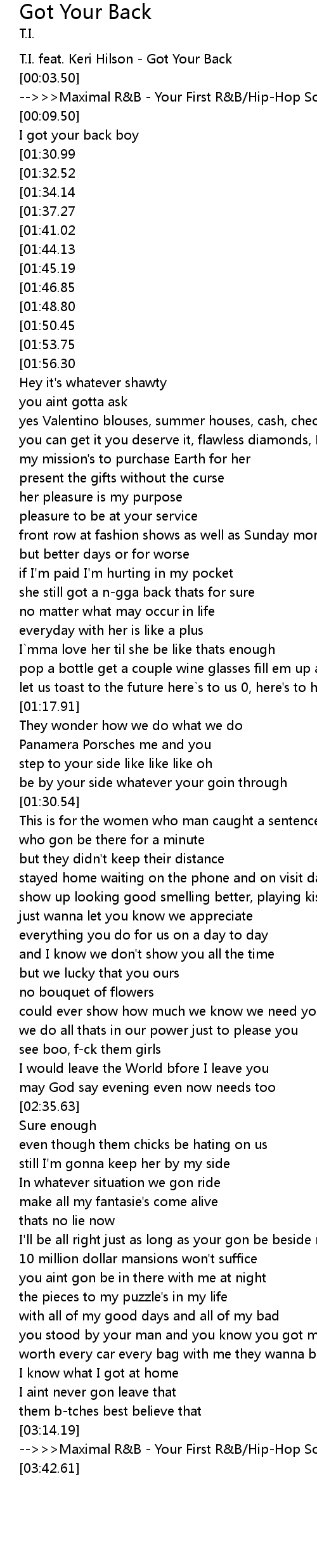 [00:00.50] T.I. feat. Keri Hilson - Got Your Back
