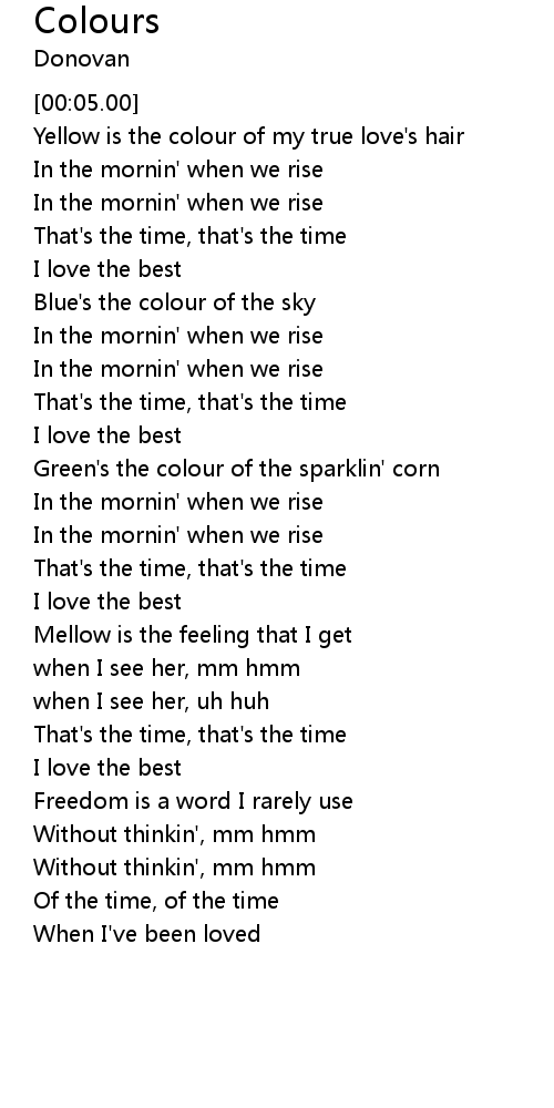 [00:10.00] Yellow is the colour of my true love's hair
