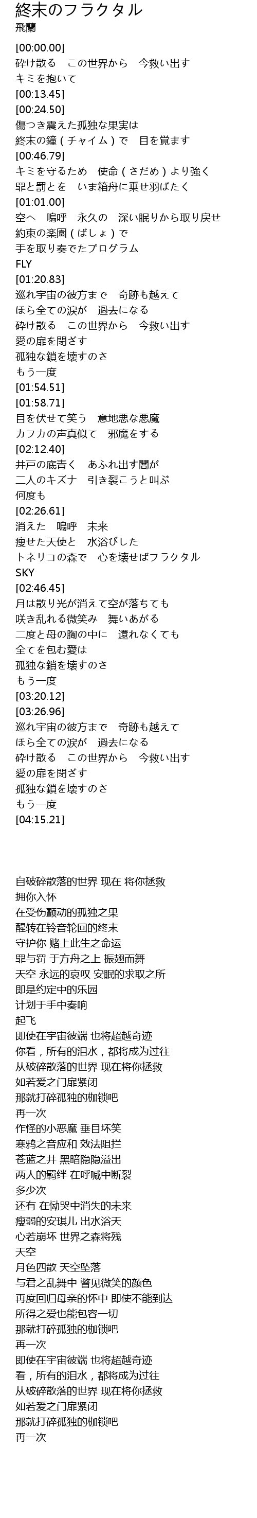 | [02:38.55] | トネリコの森で 心を壊せばフラクタル |