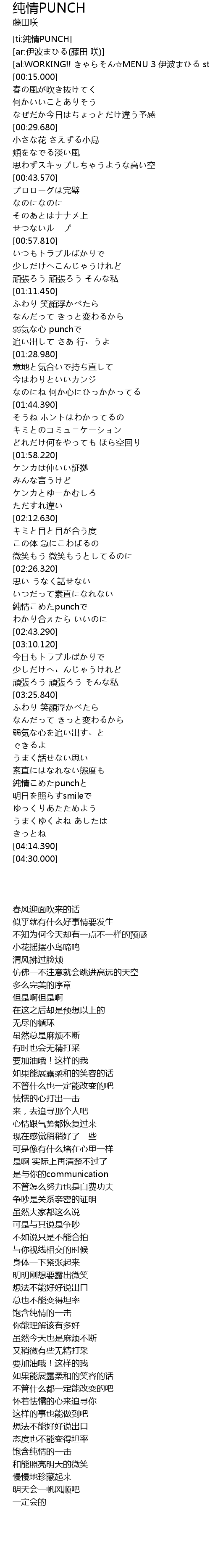| [03:46.380] | 純情こめたpunchと |
