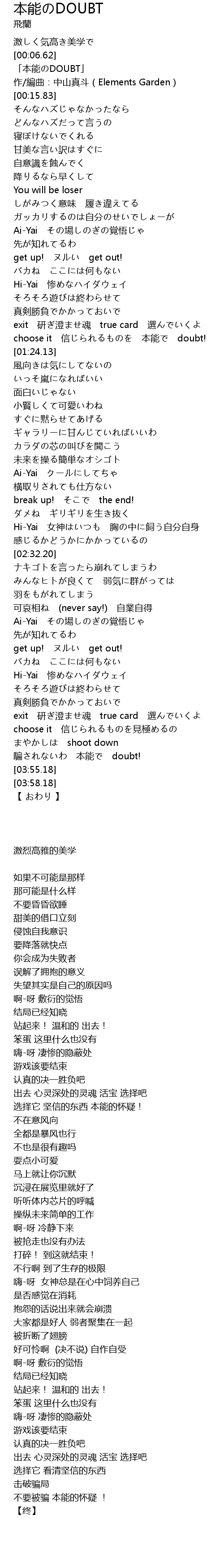 | [03:50.63] | 騙されないわ 本能で doubt! |