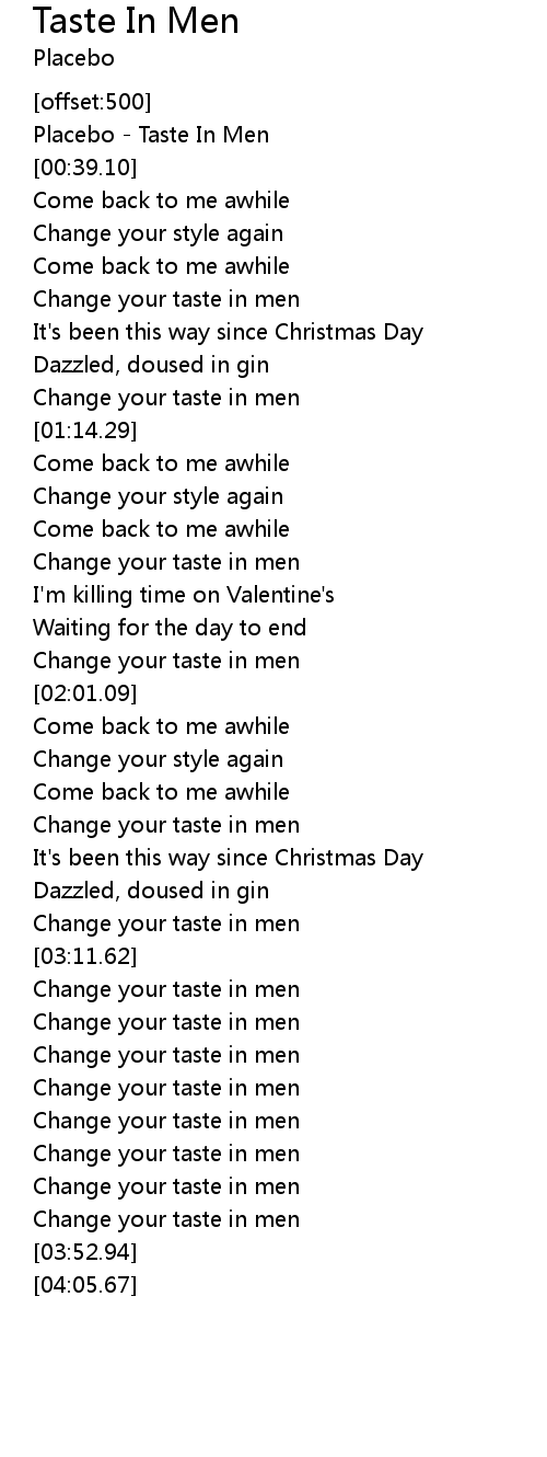 | [00:00.00] | Placebo - Taste In Men |
