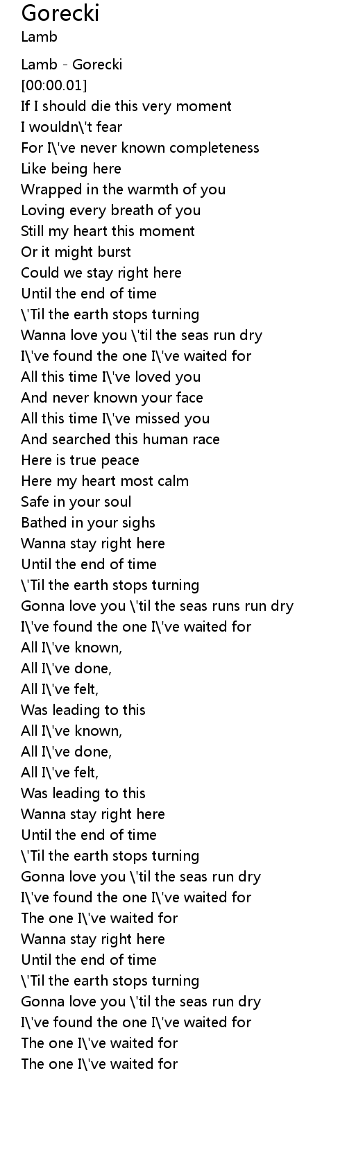 | [03:19.50] | I\'ve found the one I\'ve waited for |