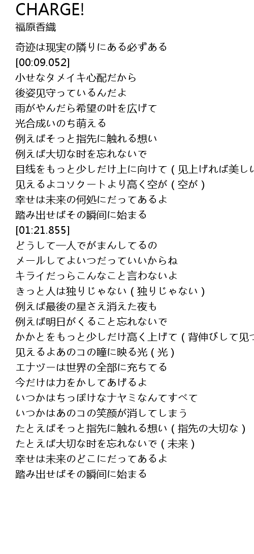 | [02:50.358] | たとえばそっと指先に触れる想い(指先の大切な) |