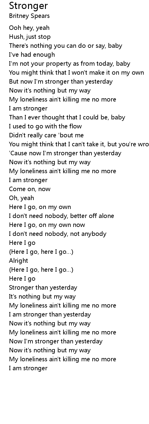 | ' Cause now I' m stronger than yesterday | |