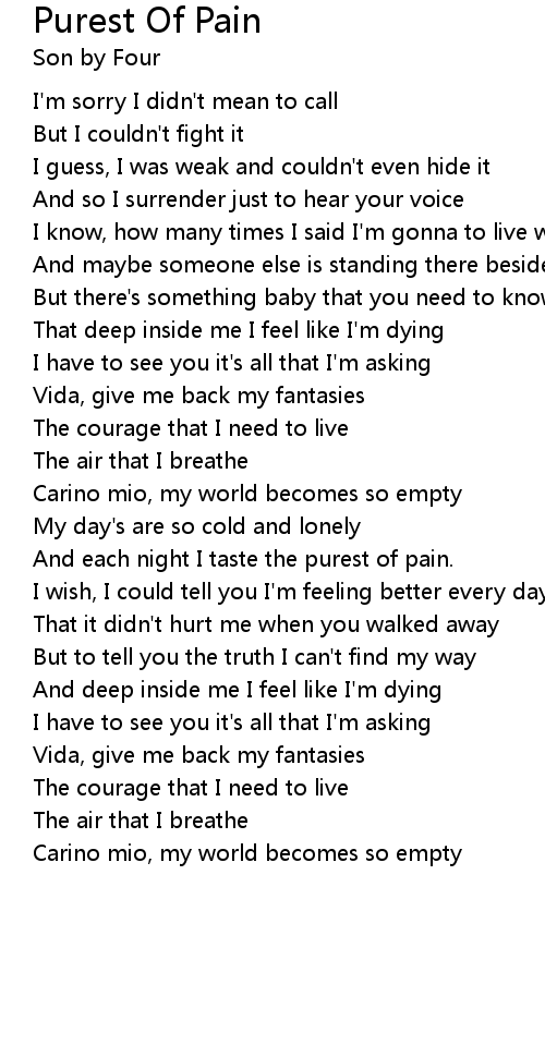 And each night I taste the purest of pain. |