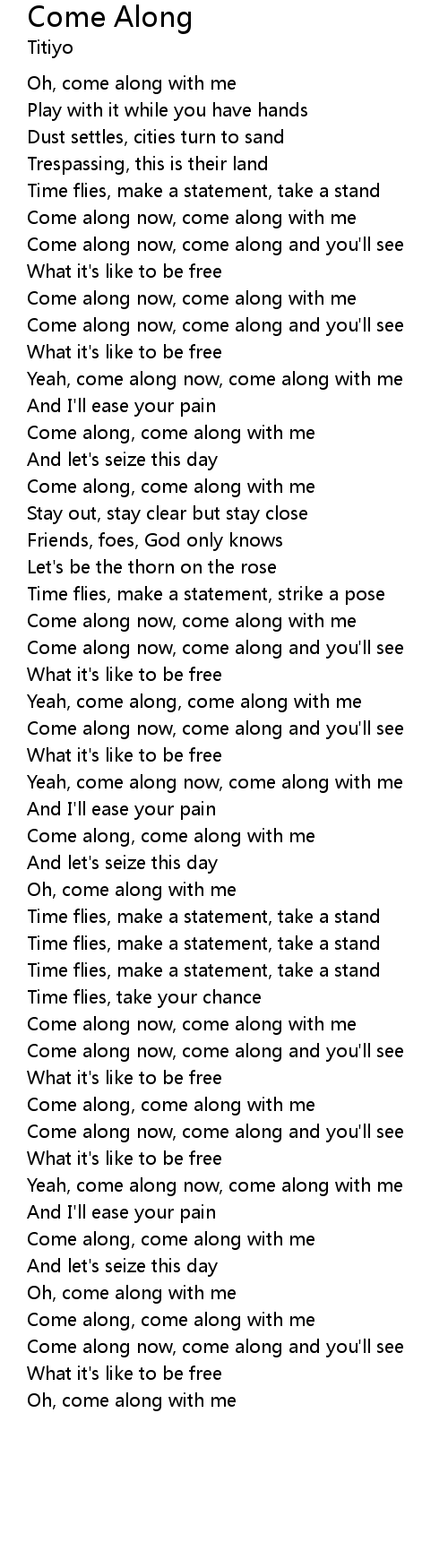 Come along now, come along with me |