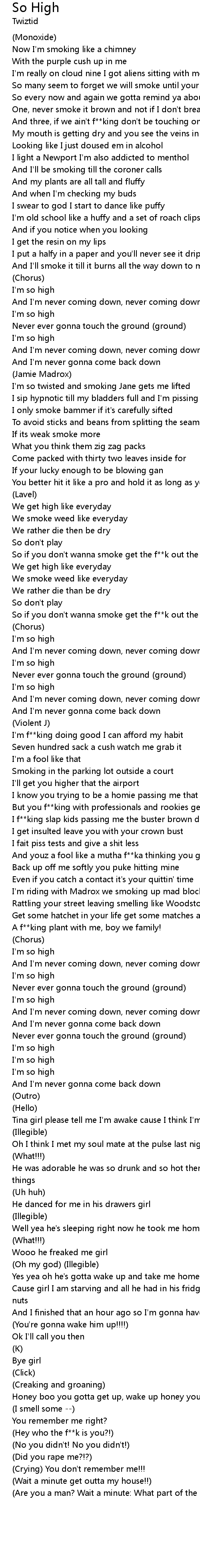 I'm so twisted and smoking Jane gets me lifted |