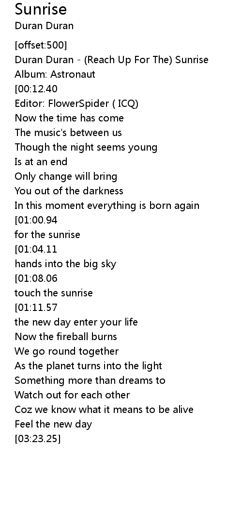 Duran Duran - (Reach Up For The) Sunrise |