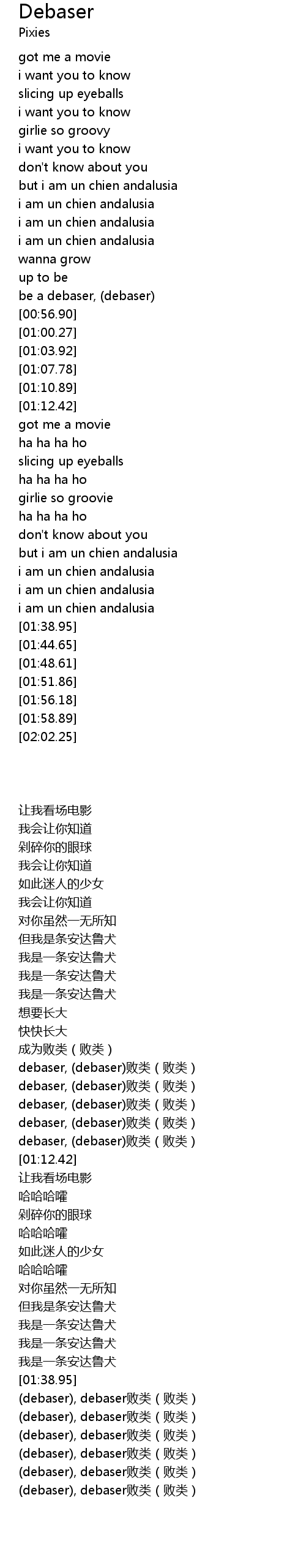 | [01:56.18] | (debaser), debaser败类(败类) |