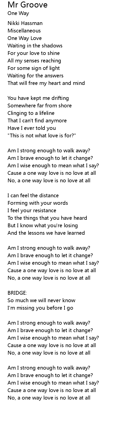 Cause a one way love is no love at all |