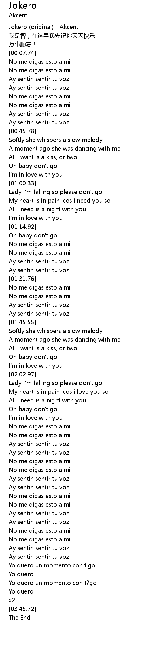 | [02:46.31] | Ay sentir, sentir tu voz |