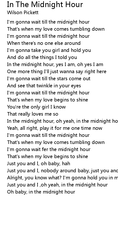 In the midnight hour, oh yeah, in the midnight hour |