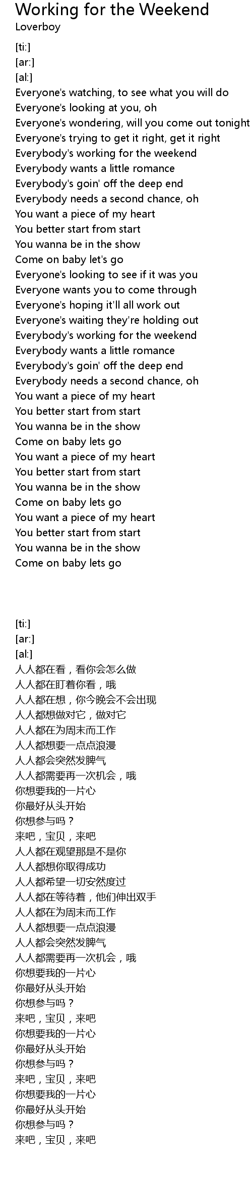 Everybody's working for the weekend |