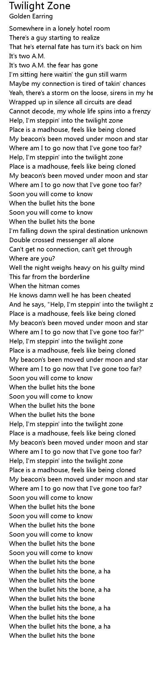 And he says, "Help, I'm steppin' into the twilight zone |