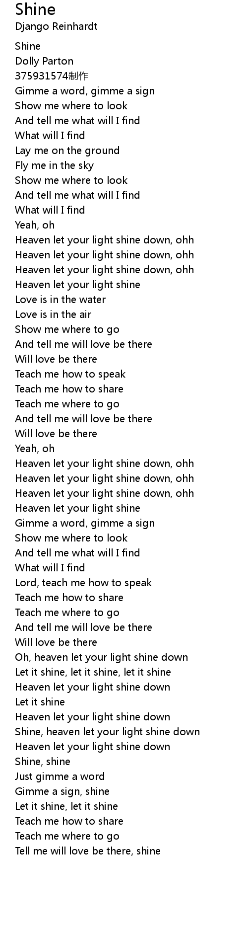 | [01:03.28] | Heaven let your light shine |
