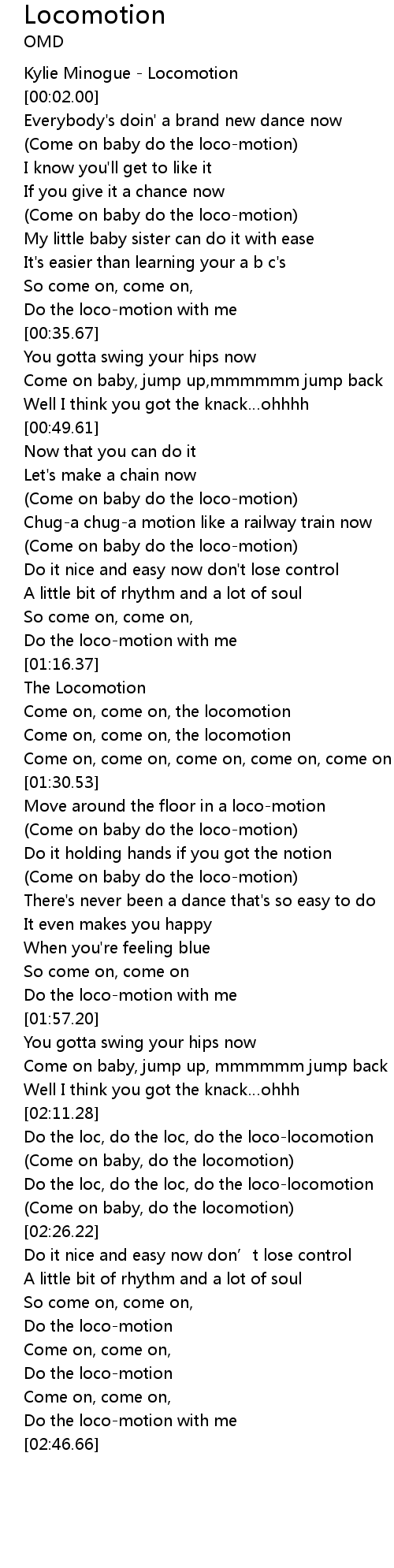 | [01:41.96] | (Come on baby do the loco-motion) |