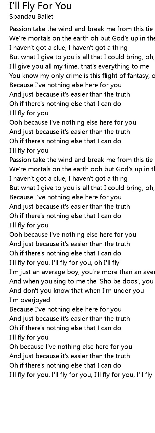 I'll fly for you, I'll fly for you, I'll fly for you, I'll fly |