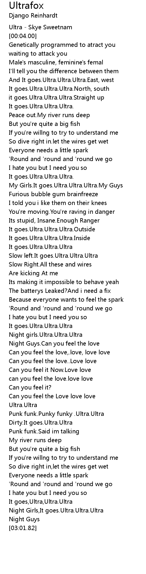 | [00:54.80] | It goes. Ultra. Ultra. Ultra. |