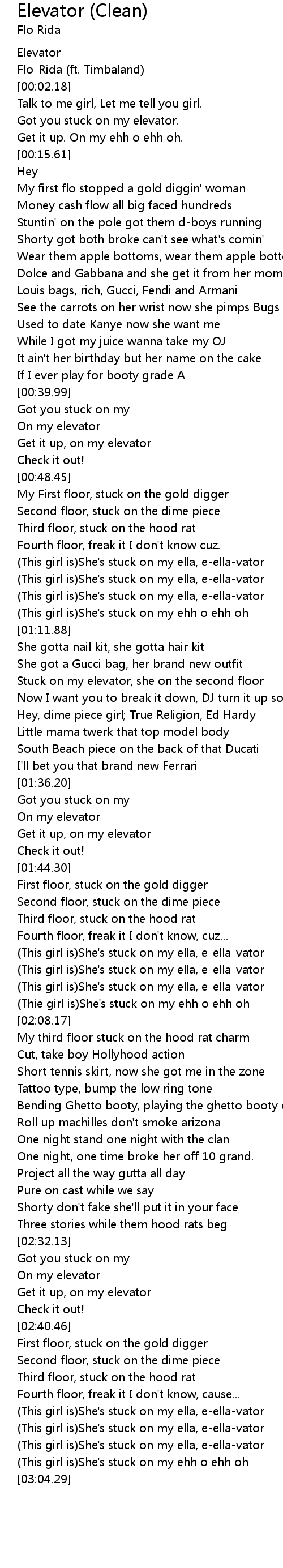 | [02:54.01] | (This girl is)She's stuck on my ella, e-ella-vator |