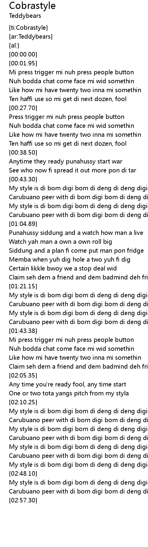 [02:48.20] My style is di bom digi bom di deng di deng digigi