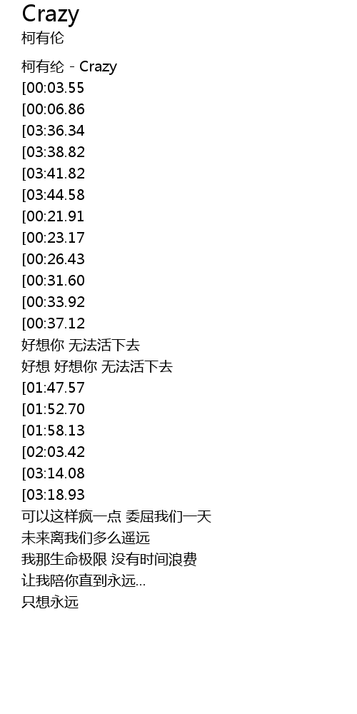| [03:24.68][03:14.08][02:08.86] | So Crazy |