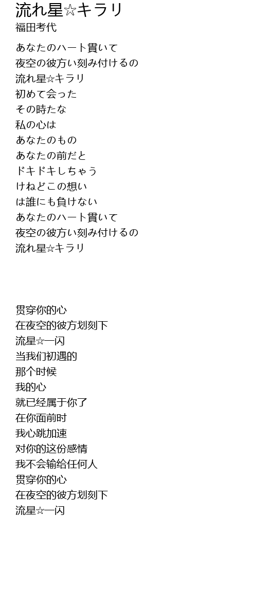 | [01:12.33] | 流れ星☆キラリ |