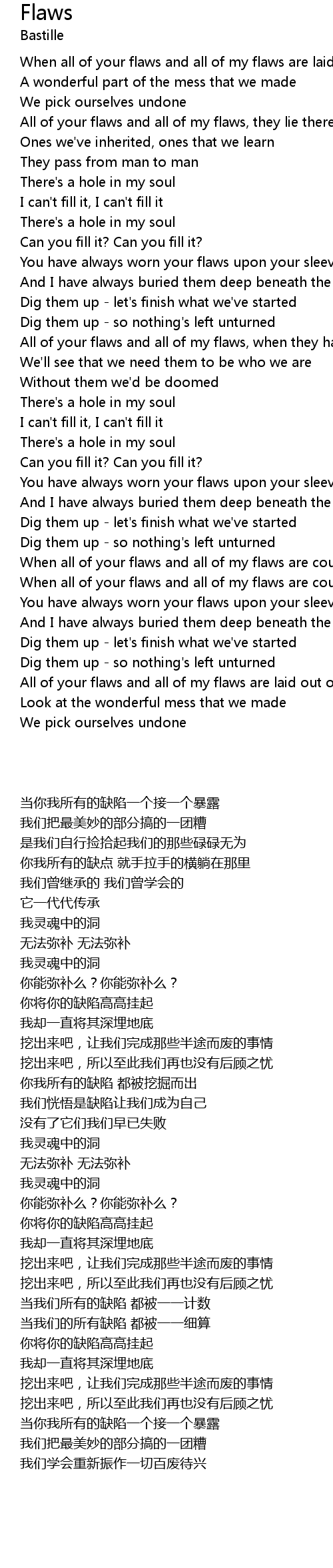 All of your flaws and all of my flaws, they lie there hand in hand |